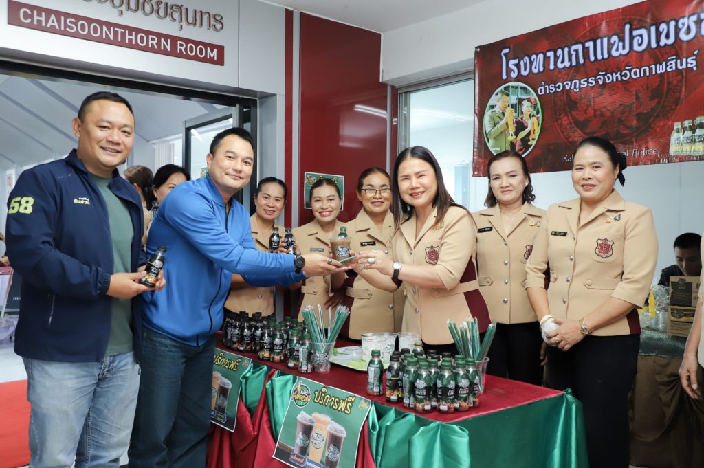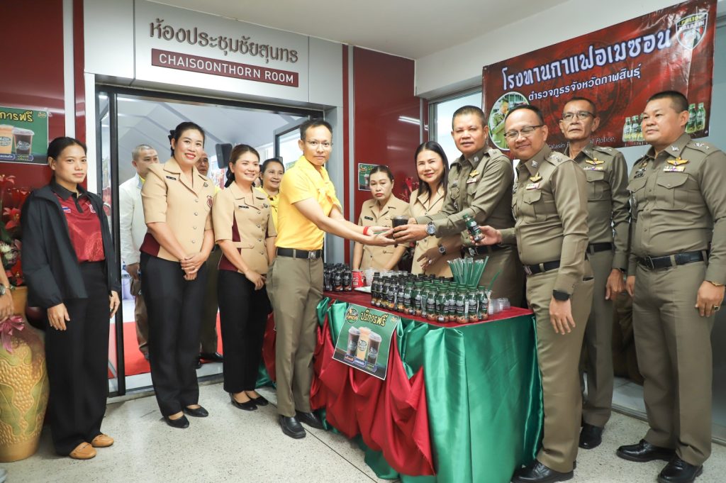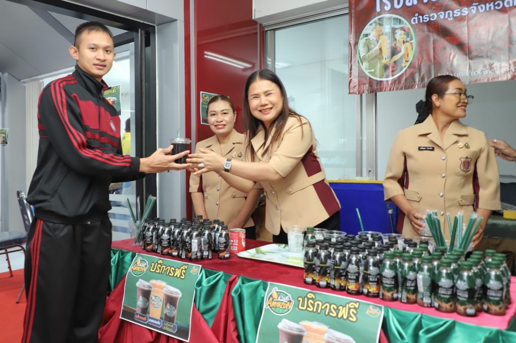 ณ ห้องประชุมชัยสุนทร ภ.จว.กาฬสินธุ์ร่วมกับเหล่ากาชาดกาฬสินธุ์ จัดโครงการรับบริจาคโลหิต จากกำลังพลตำรวจ ตำรวจจิตอาสา จิตอาสา 904 สังกัด ภ.จว.กาฬสินธุ์ บริจาคโลหิต บริจาคอวัยวะดวงตา ให้กับ โรงพยาบาลกาฬสินธุ์ เพื่อเตรียมไว้สำหรับยามฉุกเฉิน กรณีผู้ป่วยหรือ ผู้ประสบอุบัติเหตุ โอกาสนี้ พ.ต.อ.ศิรสัณห์ เยื้อนสงวนชัย รรท.ผบก.ภ.จว.กาฬสินธุ์ คุณจุรีพร สินธุไพร รักษาการประธานแม่บ้านตำรวจ ภ.จว.กาฬสินธุ์ พร้อมด้วยคณะแม่บ้านตำรวจ ได้ทำโรงทานกาแฟอเมซอน ภ.จว.กาฬสินธุ์ มอบให้กำลังพลตำรวจที่ ได้ร่วมบริจาคโลหิต ฝ่ายอำนวยการฯ สภ.เมืองกาฬสินธุ์ จนท.สหกรณ์ฯ จนท.พยาบาล และประชาชนทั่วไปที่มาติดต่อราชการ