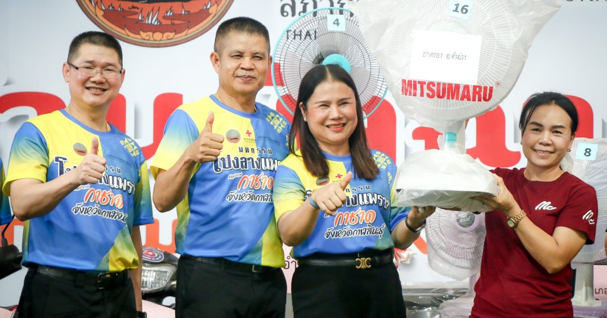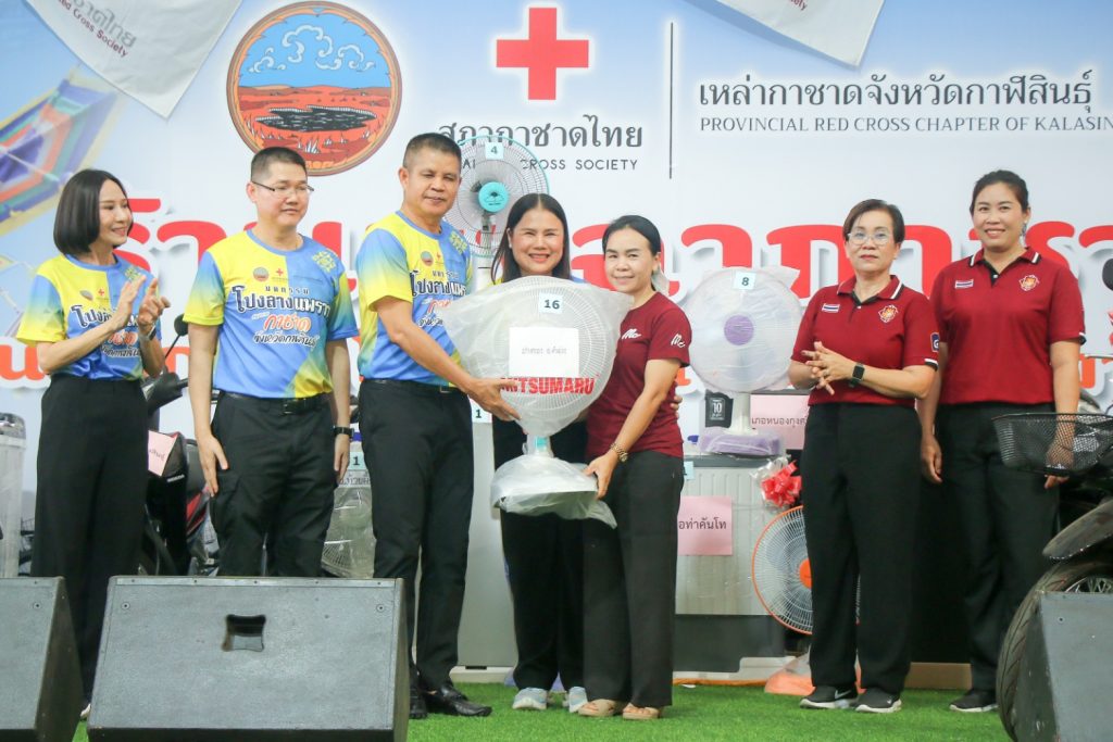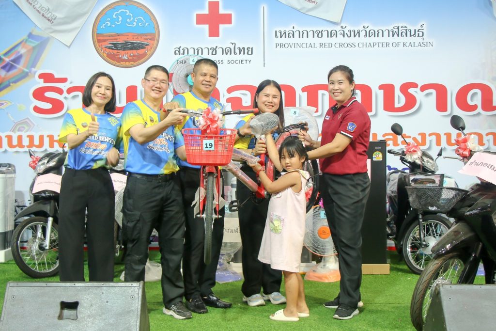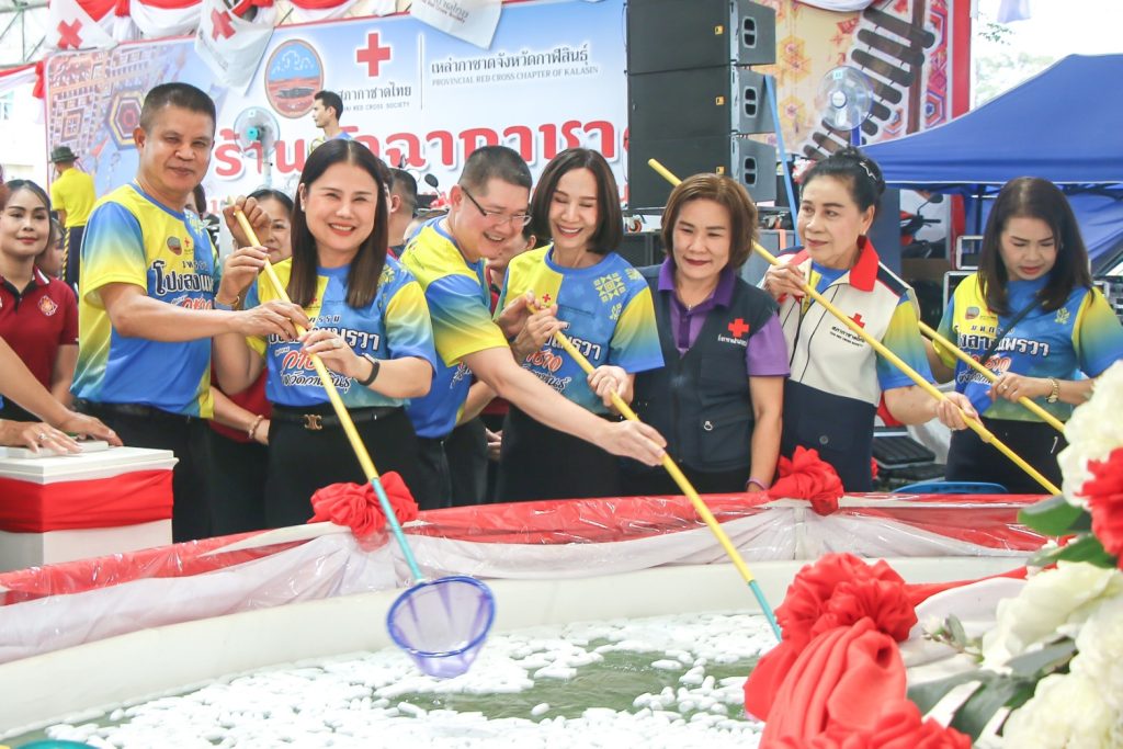 พล.ต.ต.ศิรสัณห์ เยื้อนสงวนชัย ผบก.ภ.จว.กาฬสินธุ์ คุณจุรีพร สินธุไพร ประธานแม่บ้าน ภ.จว.กาฬสินธุ์ พ.ต.อ.สมพงศ์ มั่นหมาย รอง ผบก.ภ.จว.กาฬสินธุ์ คุณไอรินทร์ มั่นหมาย รองประธานแม่บ้านฯ พร้อมคณะแม่บ้านตำรวจ ในสังกัดฯ เข้าร่วมกิจกรรมประจำร้านมัจฉากาชาด งาน “มหกรรมโปงลาง แพรวา และงานกาชาด จังหวัดกาฬสินธุ์ ประจำปี 2568 ระหว่างวันที่ 26 กุมภาพันธ์ – 9 มีนาคม 2568 ณ บริเวณสนามหน้าศาลากลาง ศูนย์ราชการจังหวัดกาฬสินธุ์ ผบก.ฯ ประธานแม่บ้านตำรวจ ได้มอบรางวัล ให้กับประชาชนที่มาอุดหนุนร้านมัจฉากาชาดได้รางวัลพัดลม และจักรยานในโอกาสนี้ด้วย