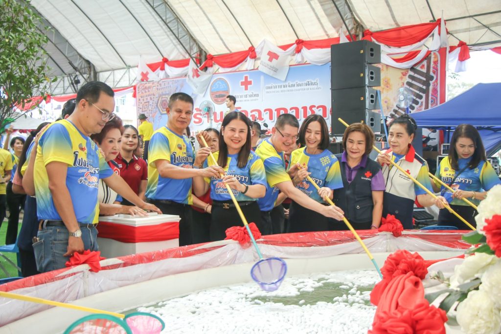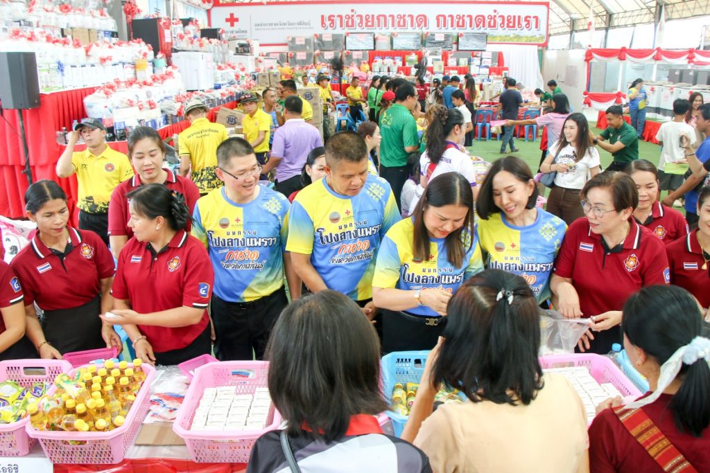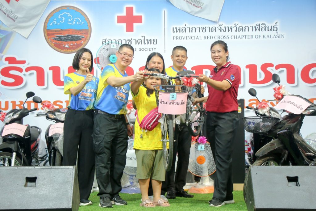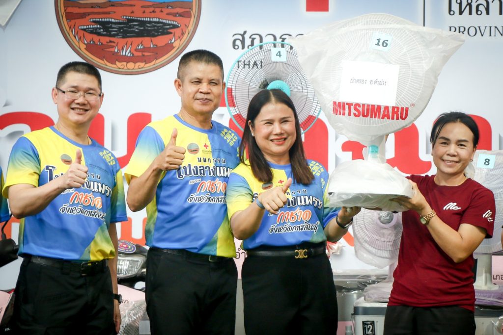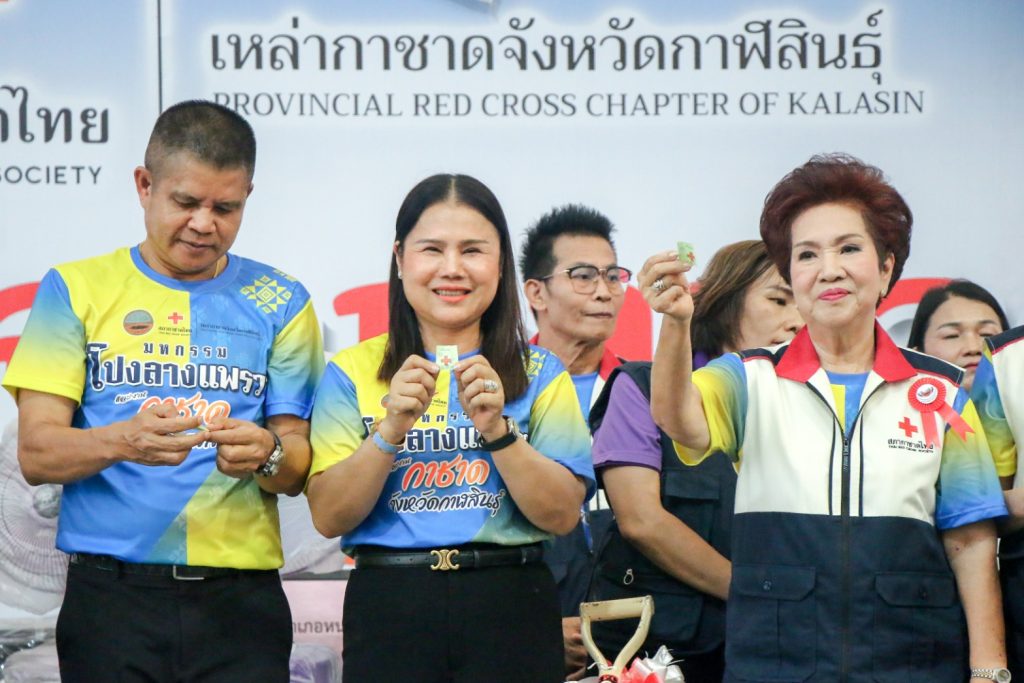พล.ต.ต.ศิรสัณห์ เยื้อนสงวนชัย ผบก.ภ.จว.กาฬสินธุ์ คุณจุรีพร สินธุไพร ประธานแม่บ้าน ภ.จว.กาฬสินธุ์ พ.ต.อ.สมพงศ์ มั่นหมาย รอง ผบก.ภ.จว.กาฬสินธุ์ คุณไอรินทร์ มั่นหมาย รองประธานแม่บ้านฯ พร้อมคณะแม่บ้านตำรวจ ในสังกัดฯ เข้าร่วมกิจกรรมประจำร้านมัจฉากาชาด งาน “มหกรรมโปงลาง แพรวา และงานกาชาด จังหวัดกาฬสินธุ์ ประจำปี 2568 ระหว่างวันที่ 26 กุมภาพันธ์ – 9 มีนาคม 2568 ณ บริเวณสนามหน้าศาลากลาง ศูนย์ราชการจังหวัดกาฬสินธุ์ ผบก.ฯ ประธานแม่บ้านตำรวจ ได้มอบรางวัล ให้กับประชาชนที่มาอุดหนุนร้านมัจฉากาชาดได้รางวัลพัดลม และจักรยานในโอกาสนี้ด้วย