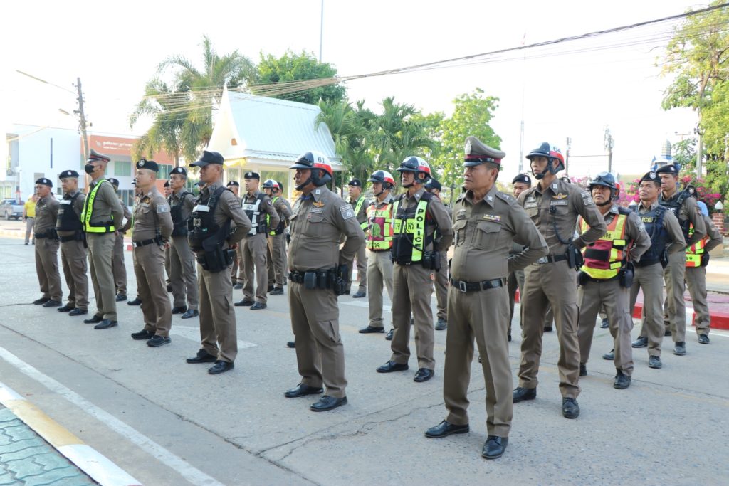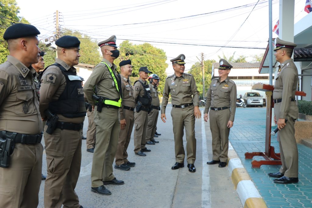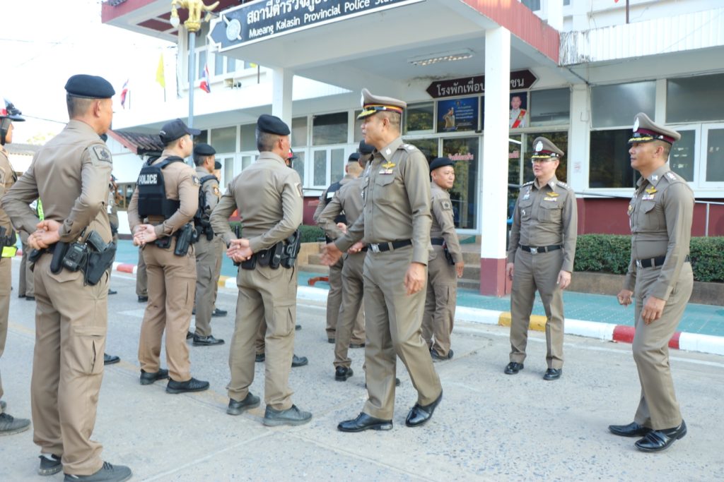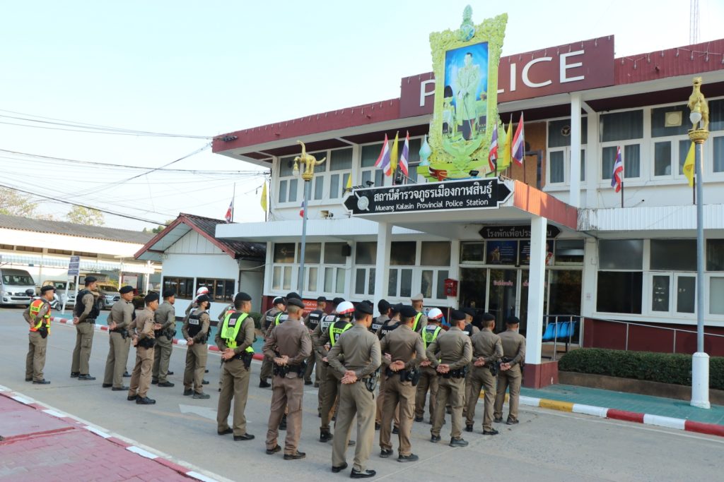พล.ต.ต.ศิรสัณห์ เยื้อนสงวนชัย ผบก.ภ.จว.กาฬสินธุ์ พ.ต.อ.สมพงศ์ มั่นหมาย รอง ผบก.ภ.จว.กาฬสินธุ์ พ.ต.อ.วีระ หางนาค รรท.ผกก.สภ.เมืองกาฬสินธุ ประชุมชี้แจงปล่อยแถวกำลังพลตำรวจ สภ.ยางตลาด , สภ.กมลาไสย , สภ.นามน , สภ.สหัสขันธ์ ,สภ.ดอนจาน และ สภ.ลำปาว ในการปฏิบัติหน้าที่รักษาความสงบเรียบร้อย และอำนวยความสะดวกด้านการจราจร งาน“มหกรรมโปงลาง แพรวา และงานกาชาด จังหวัดกาฬสินธุ์ ประจำปี 2568 ระหว่างวันที่ 26 กุมภาพันธ์ – 9 มีนาคม 2568 ณ บริเวณสนามหน้าศาลากลาง ศูนย์ราชการจังหวัดกาฬสินธุ์