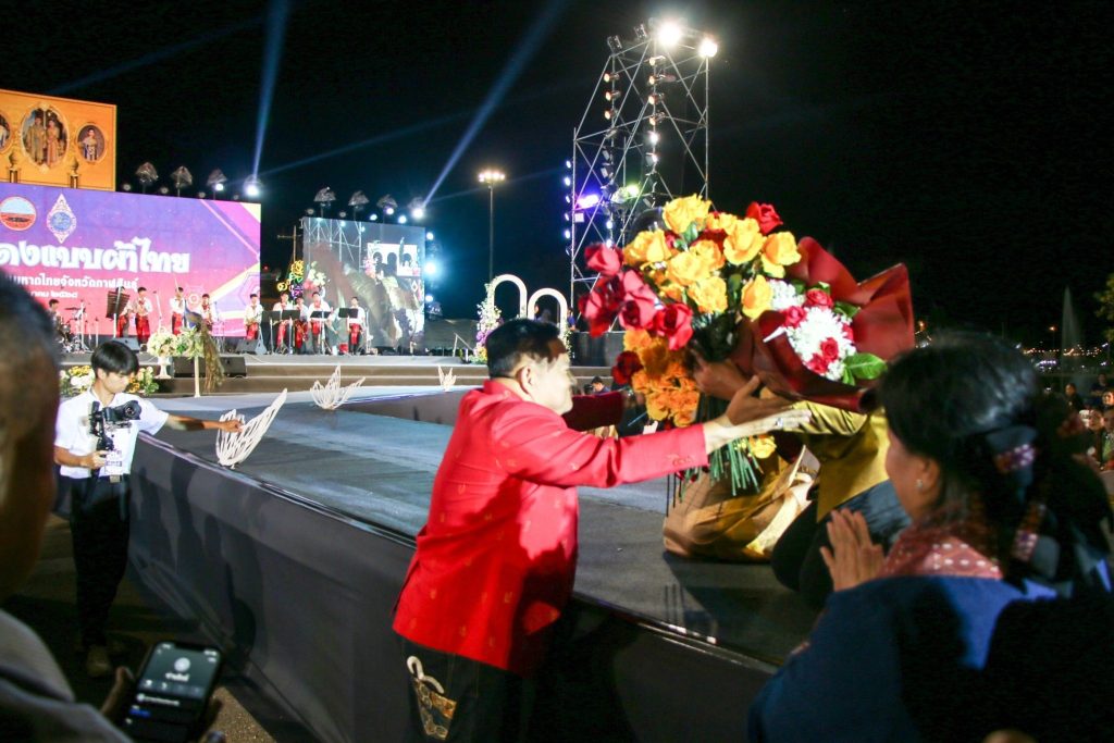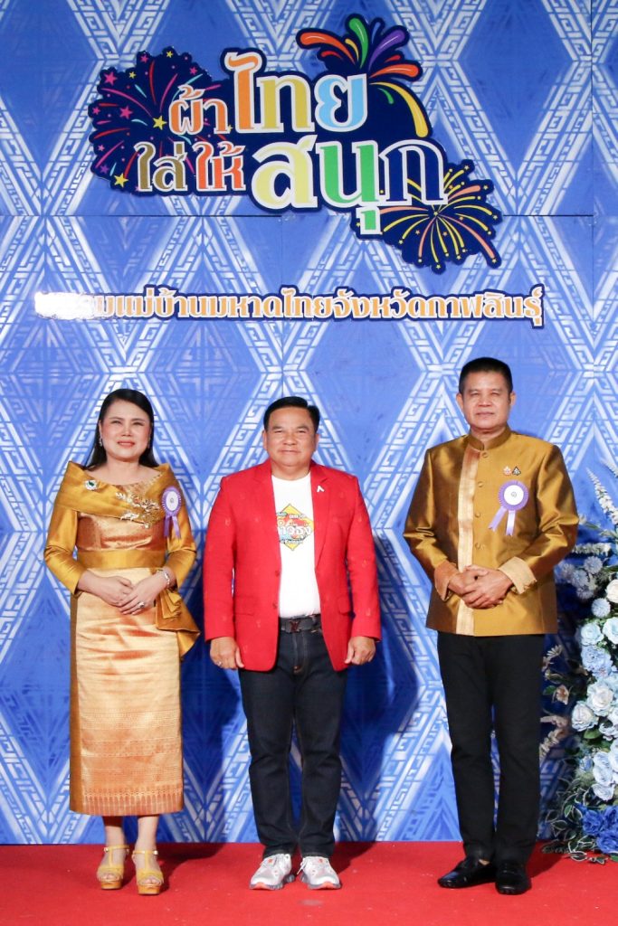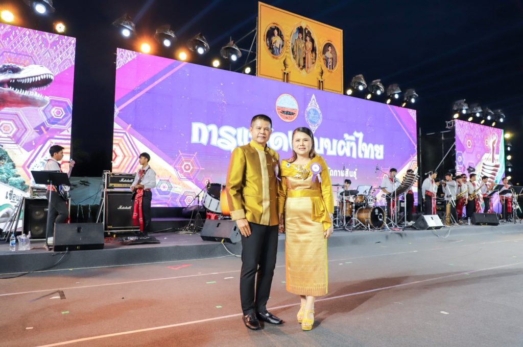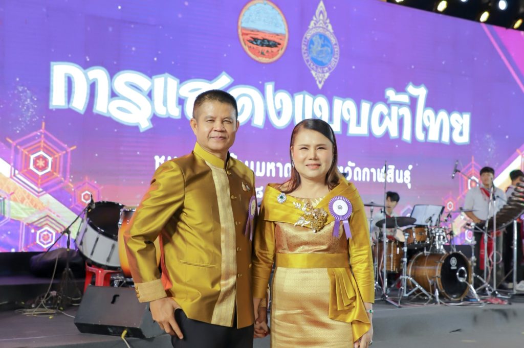 พล.ต.ต.ศิรสัณห์ เยื้อนสงวนชัย ผบก.ภ.จว.กาฬสินธุ์ คุณจุรีพร สินธุไพร ประธานแม่บ้าน ภ.จว.กาฬสินธุ์ พ.ต.อ.สมพงศ์ มั่นหมาย รอง ผบก.ภ.จว.กาฬสินธุ์ คุณไอรินทร์ มั่นหมาย รองประธานแม่บ้านฯ ผกก.สภ.เมืองกาฬสินธุ์ ผกก.สภ.ร่องคำ ผกก.สภ.ฆ้องชัย พร้อมคณะแม่บ้านตำรวจ ในสังกัดฯ เข้าร่วมกิจกรรมกิจกรรมแสดงแบบผ้าไทย งาน “มหกรรมโปงลาง แพรวา และงานกาชาด จังหวัดกาฬสินธุ์ ประจำปี 2568 โดย นายสนั่น พงษ์อักษร ผู้ว่าราชการจังหวัดกาฬสินธุ์ เป็นประธาน ผบก.ฯ และประธานแม่บ้านตำรวจ ได้ร่วมแสดงแบบผ้าไทยประเภทกิตติมศักดิ์ พร้อมได้รับ รางวัล ขวัญใจ “ผ้าไทยใส่ให้สนุก” กาฬสินธุ์ 2568 ในการแสดงแบบครั้งนี้ ณ เวทีกลางด้านหน้าศาลากลาง ศูนย์ราชการจังหวัดกาฬสินธุ์ (8 มี.ค. 2568 เวลา 18.00 น.)