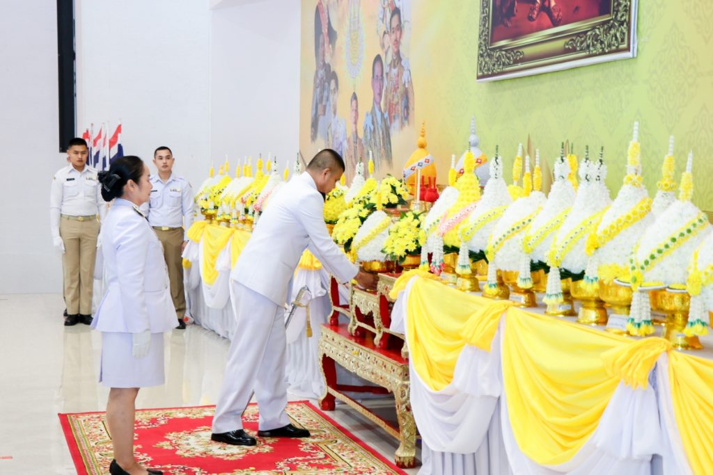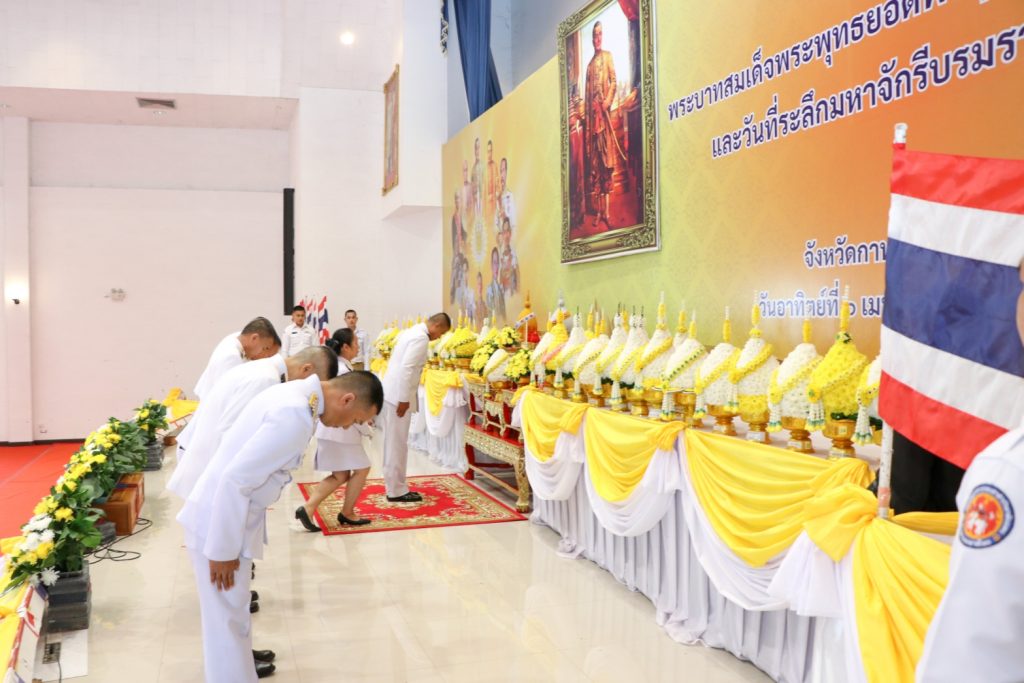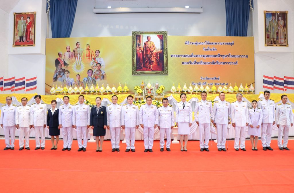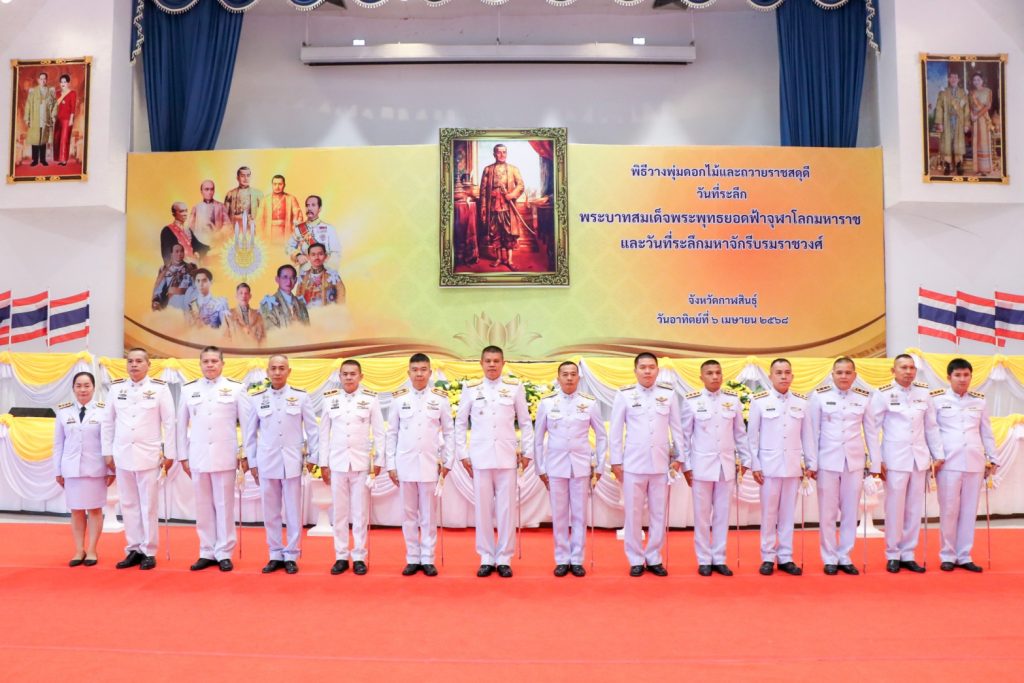 พล.ต.ต.ศิรสัณห์ เยื้อนสงวนชัย ผบก.ภ.จว.กาฬสินธุ์ พ.ต.อ.วีระ หางนาค ผกก.สภ.เมืองกาฬสินธุ์ พร้อมกำลังพลตำรวจฝ่ายอำนวยการฯ กก.สืบสวน ภ.จว.กาฬสินธุ์ และสภ.เมืองกาฬสินธุ์ เข้าร่วมพิธีวางพุ่มดอกไม้และถวายราชสดุดี เนื่องในวันที่ระลึกพระบาทสมเด็จพระพุทธยอดฟ้าจุฬาโลกมหาราช และวันที่ระลึกมหาจักรีบรมราชวงศ์ โดยมี นายสนั่น พงษ์อักษร ผู้ว่าราชการจังหวัดกาฬสินธุ์ เป็นประธานในพิธี มีหัวหน้าส่วนราชการ ข้าราชการทุกหมู่เหล่าในจังหวัดกาฬสินธุ์ เข้าร่วมพิธี ณ หอประชุมศูนย์ราชการจังหวัดกาฬสินธุ์ (6 เม.ย. 2568 เวลา 08.30 น.)