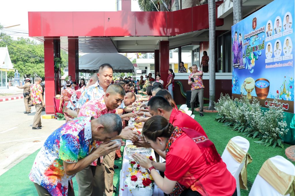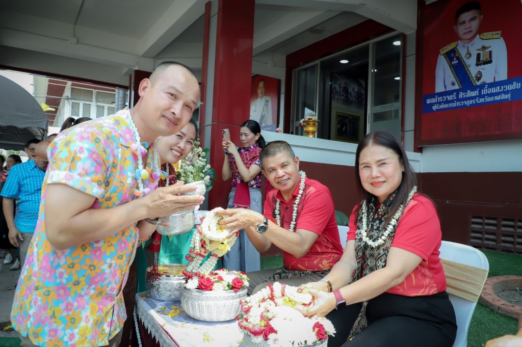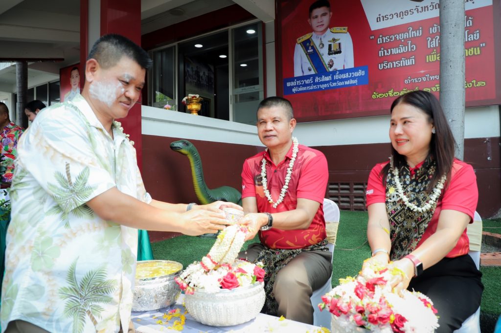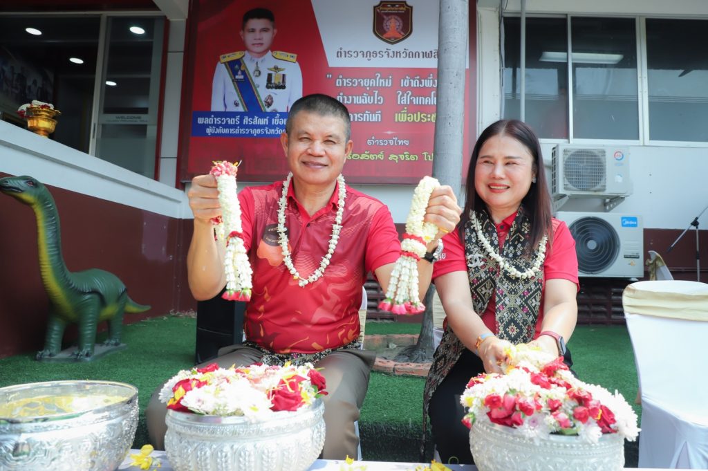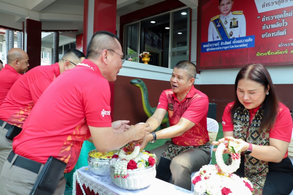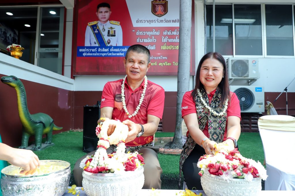 ภ.จว.กาฬสินธุ์ จัดพิธีสรงน้ำพระ และรดน้ำขอพรผู้บังคับบัญชา โดย พ.ต.อ.สุริเดช วรรณสุทธิ์ รอง ผบก.ภ.จว.กาฬสินธุ์ นำคณะรอง ผบก.ฯ รอง ประธานแม่บ้านตำรวจฯ ผกก.หน.สถานีฯ ผกก.สืบสวนฯ ผกก.(สอบสวน)ฯ สว.ฯ หน.สถานี กำลังพลฝ่ายอำนวยการ กก.สืบสวนฯ และสภ.เมืองกาฬสินธุ์ คณะแม่บ้านตำรวจ ร่วมพิธีสรงน้ำพระ และขอพรจาก พล.ต.ต.สิรสัณห์ เยื้อนสงวนชัย ผบก.ภ.จว.กาฬสินธุ์ คุณจรีพร สินธุไพร ประธานแม่บ้านตำรวจ ภ.จว.กาฬสินธุ์ เพื่อสสร้างความสัมพันธ์อันดี ส่งเสริมความรักความสามัคคีให้กับกำลังพลในหน่วย ที่ได้ปฏิบัติงาน ร่วมกันอย่างเหน็ดเหนื่อย ให้คงความสุขสนุกสนาน สืบสานประเพณีสงกรานต์ปีใหม่ไทย 2568 รักษาประเพณีอันดีงามนี้ไว้สืบไป ณ บริเวณหน้าอาคาร ภ.จว.กาฬสินธุ์ (8 เม.ย. 2568 เวลา 13.30 น.)