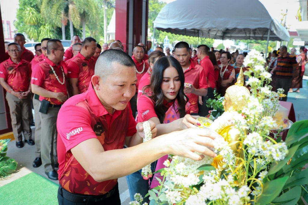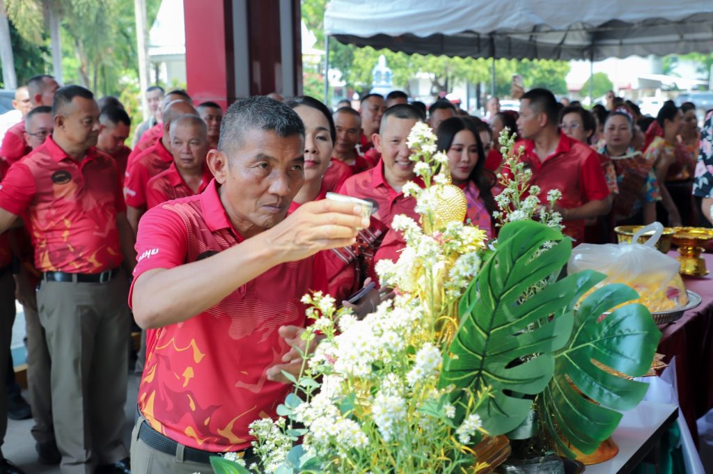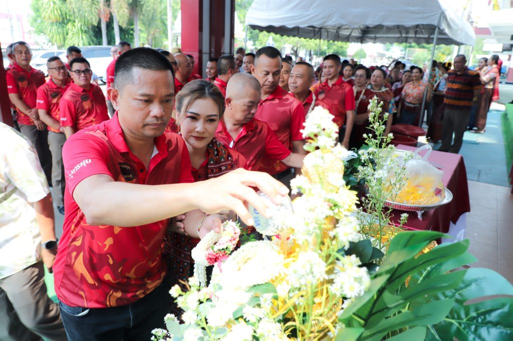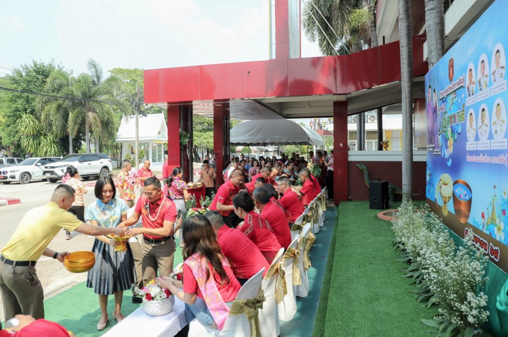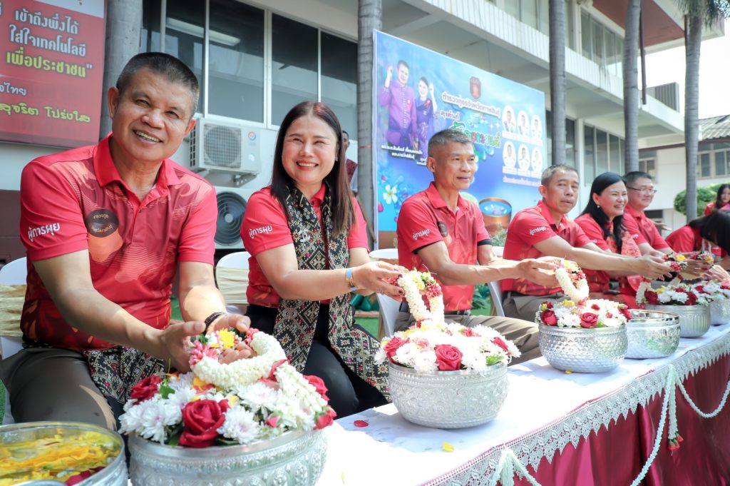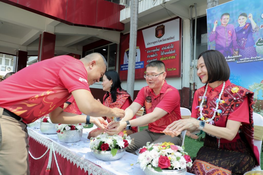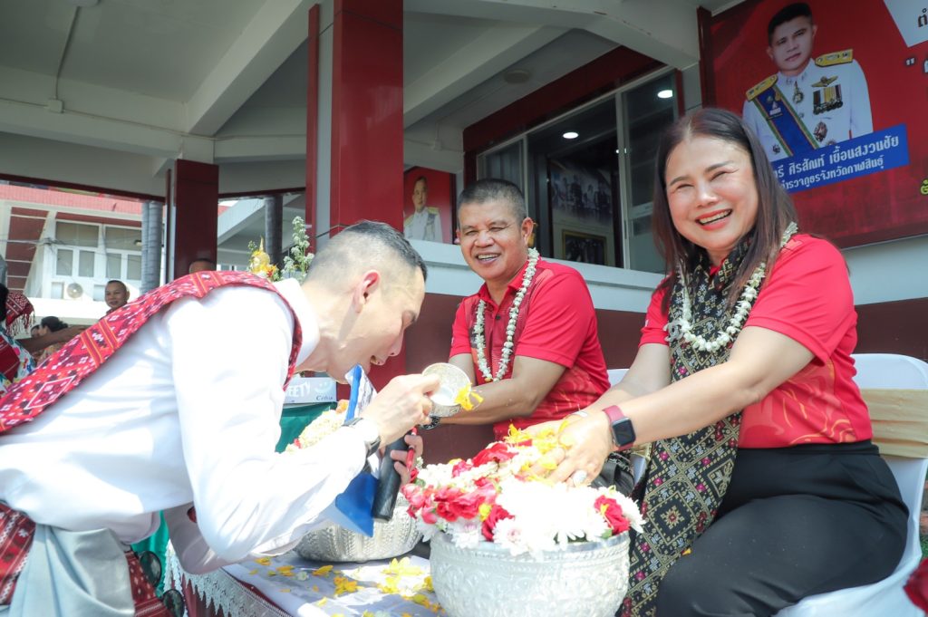 ภ.จว.กาฬสินธุ์ จัดพิธีสรงน้ำพระ และรดน้ำขอพรผู้บังคับบัญชา โดย พ.ต.อ.สุริเดช วรรณสุทธิ์ รอง ผบก.ภ.จว.กาฬสินธุ์ นำคณะรอง ผบก.ฯ รอง ประธานแม่บ้านตำรวจฯ ผกก.หน.สถานีฯ ผกก.สืบสวนฯ ผกก.(สอบสวน)ฯ สว.ฯ หน.สถานี กำลังพลฝ่ายอำนวยการ กก.สืบสวนฯ และสภ.เมืองกาฬสินธุ์ คณะแม่บ้านตำรวจ ร่วมพิธีสรงน้ำพระ และขอพรจาก พล.ต.ต.สิรสัณห์ เยื้อนสงวนชัย ผบก.ภ.จว.กาฬสินธุ์ คุณจรีพร สินธุไพร ประธานแม่บ้านตำรวจ ภ.จว.กาฬสินธุ์ เพื่อสสร้างความสัมพันธ์อันดี ส่งเสริมความรักความสามัคคีให้กับกำลังพลในหน่วย ที่ได้ปฏิบัติงาน ร่วมกันอย่างเหน็ดเหนื่อย ให้คงความสุขสนุกสนาน สืบสานประเพณีสงกรานต์ปีใหม่ไทย 2568 รักษาประเพณีอันดีงามนี้ไว้สืบไป ณ บริเวณหน้าอาคาร ภ.จว.กาฬสินธุ์ (8 เม.ย. 2568 เวลา 13.30 น.)