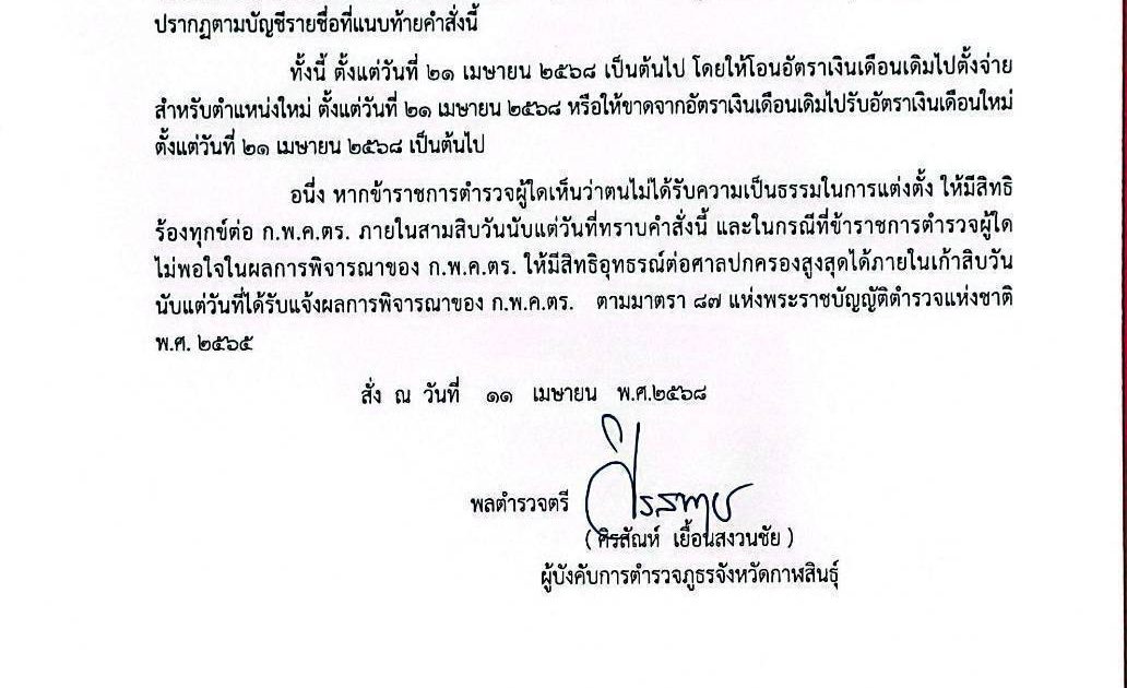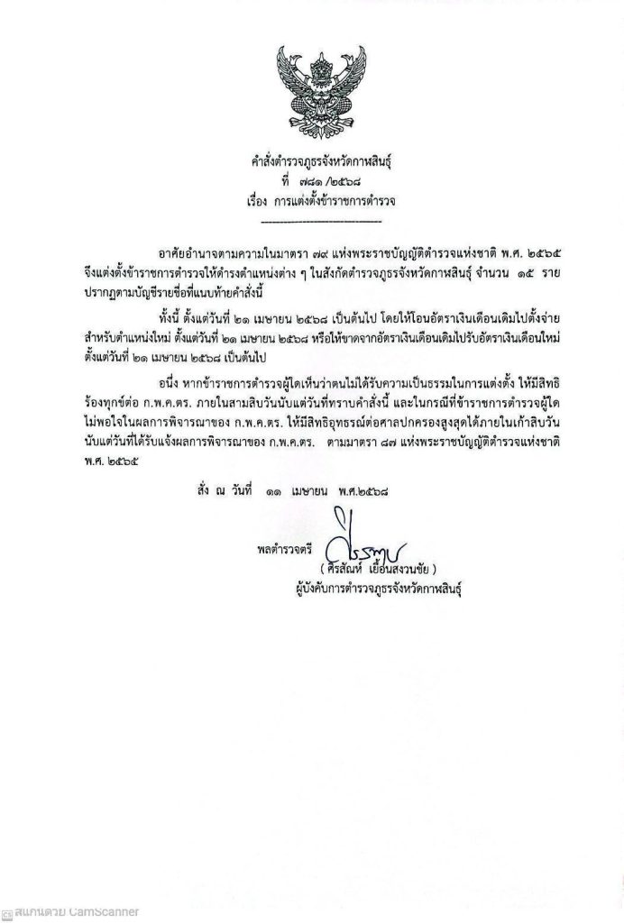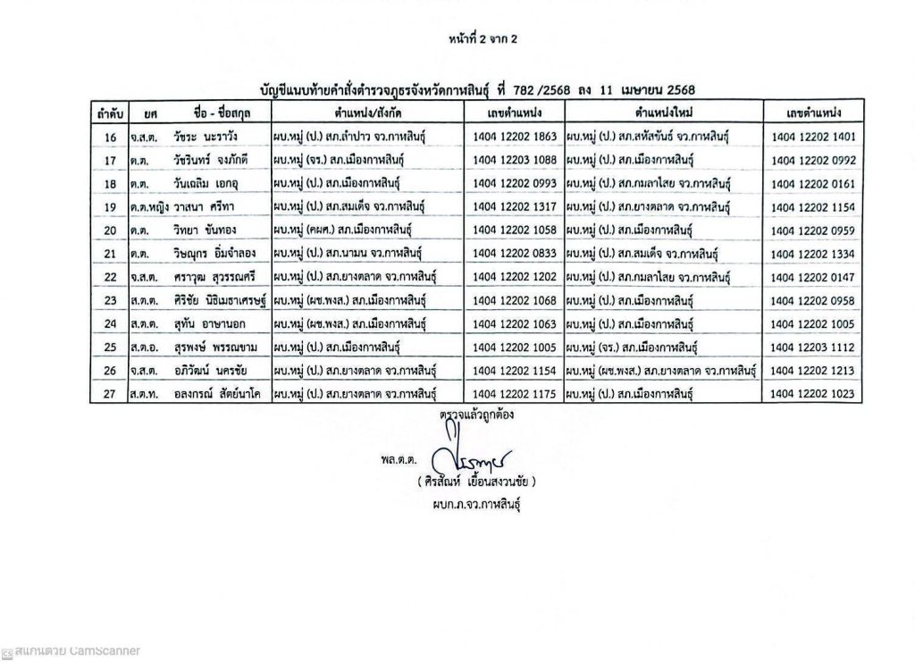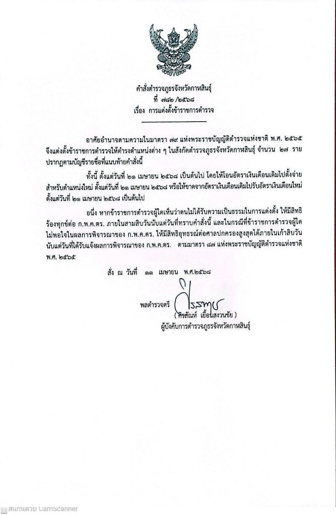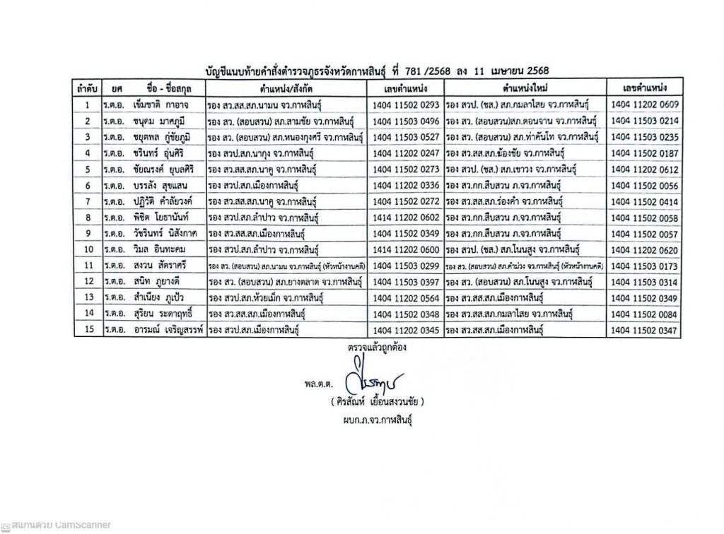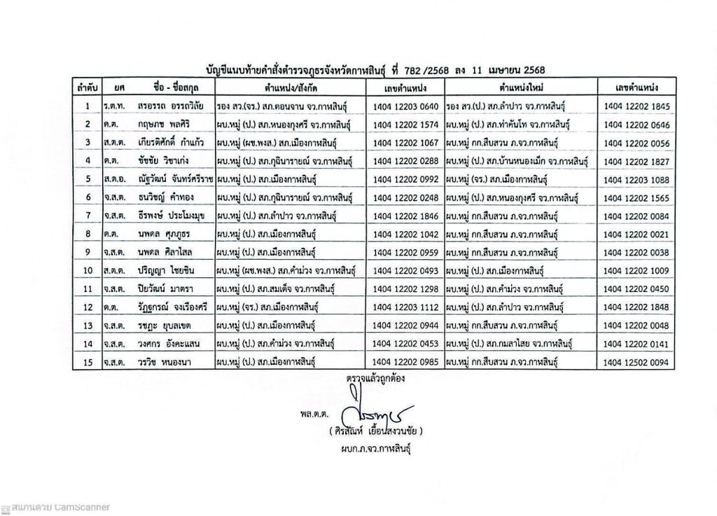 คำสั่งตำรวจภูธรจังหวัดกาฬสินธุ์ที่ 781/2568 และ 782/2568 ลงวันที่ 11 เม.ย.2568