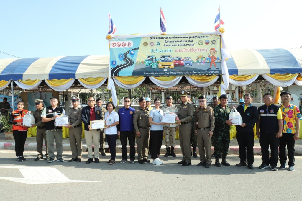 14 เม.ย. 2568 เวลา 15.50 น.พล.ต.ต.ศิรสัณห์ เยื้อนสงวนชัย ผบก.ภ.จว.กาฬสินธุ์ พร้อมคณะตรวจเยี่ยมฯ ตามคำสั่งศูนย์อำนวยการความปลอดภัยทางถนนจังหวัดกาฬสินธุ์ ออกตรวจศูนย์ปฏิบัติการฯ อ.สามชัย จุดตรวจบริการฯที่ สามแยก อ.สามชัย เพื่อสร้างขวัญกำลังใจในการปฏิบัติงาน ของเจ้าหน้าที่ประจำจุดตรวจฯ โดยมี พ.ต.อ.เสนีย์ กาญจนคช ผกก.สภ.สามชัย , พ.ต.ท.มนต์เทียน พลเยี่ยม สวป.ฯ เจ้าหน้าที่ตำรวจ เจ้าหน้าที่ชุดปฏิบัติการประจำจุดตรวจ จิตอาสา ให้การต้อนรับ ผบก.ฯ กล่าว ชื่นชมในการปฏิบัติหน้าที่ได้อย่างพร้อมเพียง และเสียสละ ขอให้เจ้าหน้าที่ทุกท่านตั้งใจปฏิบัติงานด้วยความเข้มแข็ง และอดทน โดยเน้นหลักตามมาตรการความปลอดภัยทางถนน 10 รสขมฯ ได้มอบอาหารและเครื่องดื่มเพื่อเป็นขวัญกำลังใจในการปฏิบัติหน้าที่