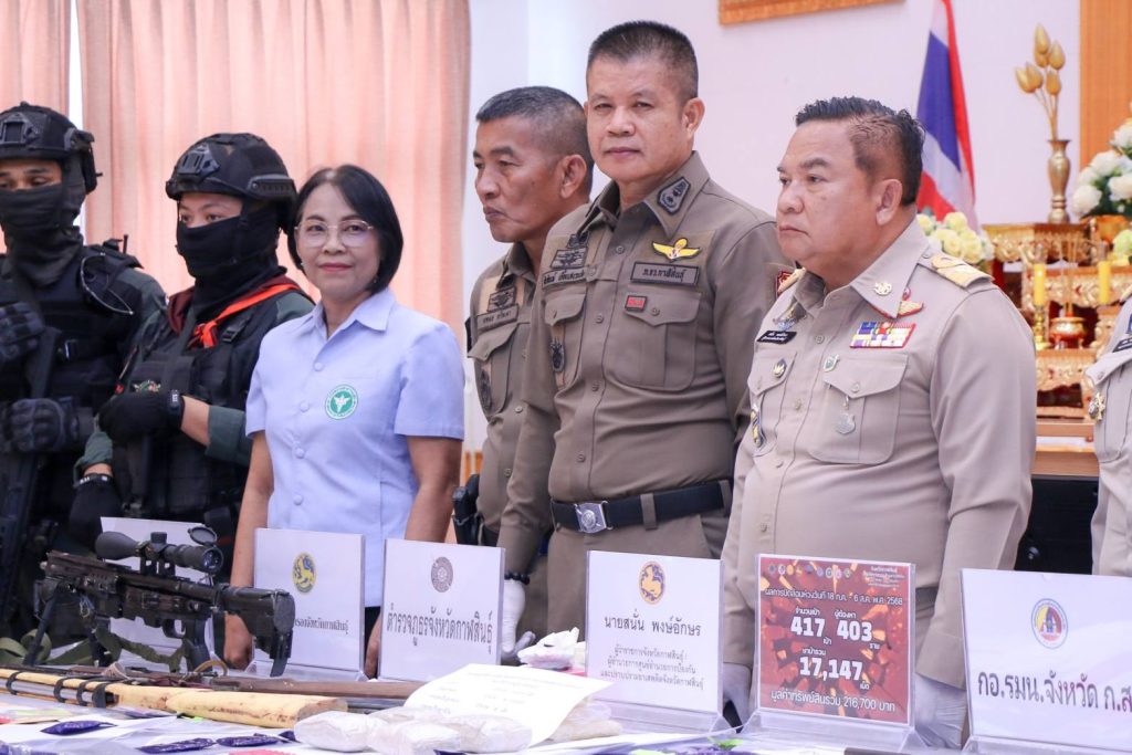มีเป้าหมายที่ปิดล้อมพร้อมกัน 18 อำเภอ จำนวน 73 เป้าหมาย ผู้เสพ/ผู้ครอบครอง และผู้ค้า จำนวน 54 ราย ยาบ้ารวม จำนวน 15,139 เม็ด อาวุธปืน จำนวน 11 กระบอก โทรศัพท์มือถือ จำนวน 1 เครื่อง เงินสด จำนวน 6,550บาท และของกลางอื่น ๆ หลายรายการ ส่วนผลการปฏิบัติการกวาดล้างยาเสพติดจังหวัดกาฬสินธุ์ ห้วงระหว่างวันที่ 18 กรกฎาคม 2568 ถึงวันที่ 5 สิงหาคม 2568 นั้น มียอดจับกุมรวม จำนวน 417 ราย ผู้ต้องหา จำนวน 403 ราย ของกลางยาบ้า จำนวน 17,147 เม็ด มูลค่าทรัพย์สิน กว่า 216,700 บาท ( 6 ส.ค. 2568 เวลา 11.30 น. )