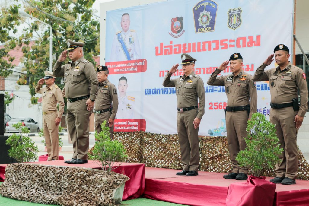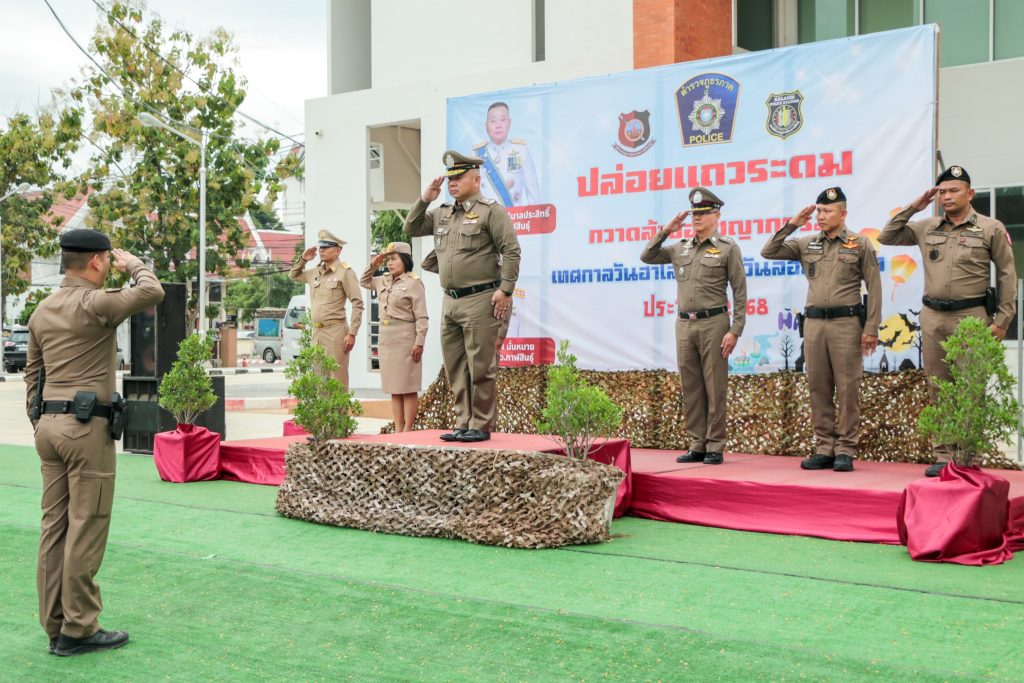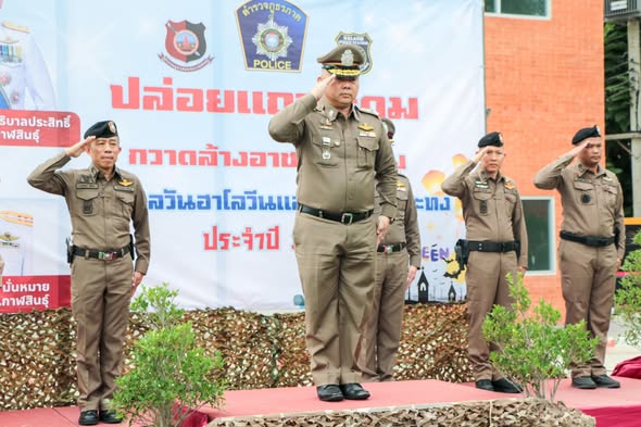 พล.ต.ต.ทรงพล บริบาลประสิทธิ์ ผบก.ภ.จว.กาฬสินธุ์ เป็นประธาน ในการปล่อยแถวระดมกวาดล้างอาชญากรรม การรักษาความสงบเรียบร้อย ช่วงเทศกาลวันฮาโลวีน และช่วงเทศกาลประเพณีลอยกระทงประจำปี 2568 โดย พ.ต.อ.คะเชนทร์ ยืนยง พ.ต.อ.สมพงศ์ มั่นหมาย พ.ต.อ.ขจรฤทธิ์ วงราช พ.ต.อ.นพดล ศรีชะตา พ.ต.อ.ปวิช แสงอรุณ รอง ผบก.ภ.จว.กาฬสินธุ์ นำกำลังพลตำรวจ กก.สืบสวนภ.จว.กาฬสินธุ์ สภ.เมืองกาฬสินธุ์ พิสูจน์หลักฐานจังหวัดกาฬสินธุ์ ตำรวจทางหลวง ตรวจคนเข้าเมืองกาฬสินธุ์ สนธิกำลังร่วมกับฝ่ายปกครอง ปภ.จังหวัดกาฬสินธุ์ อส. อปพร. มูลนิธิกู้ภัยกาฬสินธุ์ กว่า 200 นาย เข้าร่วมพิธีปล่อยแถวในครั้งนี้ ณ ลานหน้า อาคารศูนย์รับแจ้งเหตุฉุกเฉินแห่งชาติจังหวัดกาฬสินธุ์ ( 28 ต.ค. 2568 เวลา 16.00 น. )