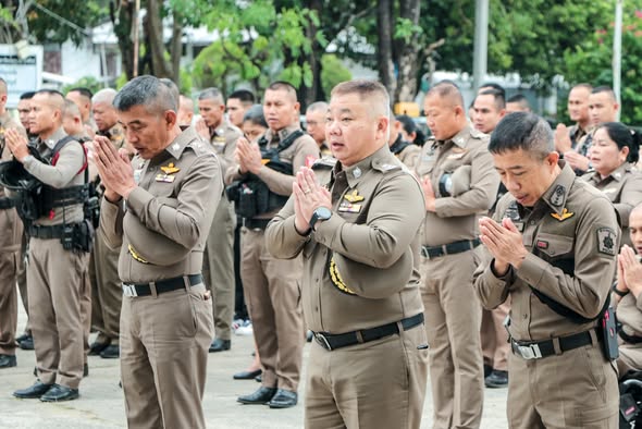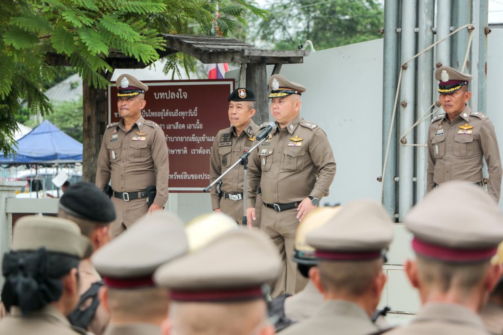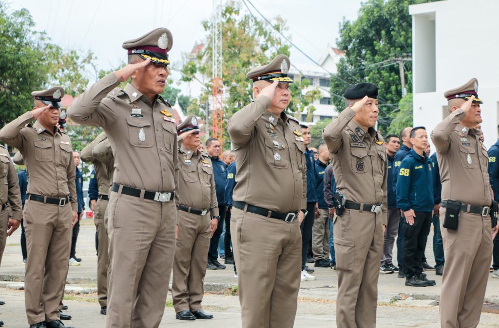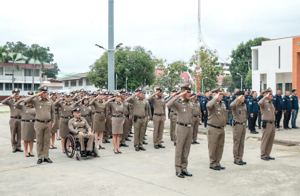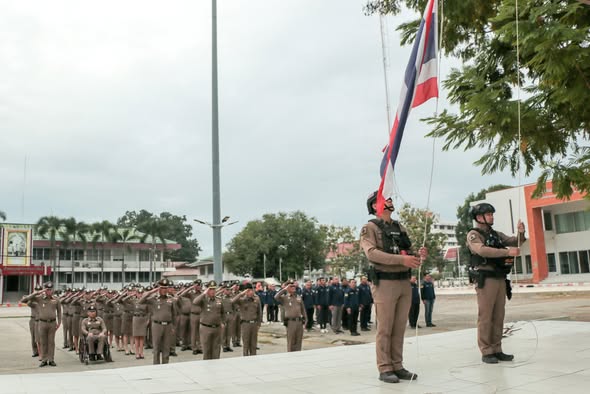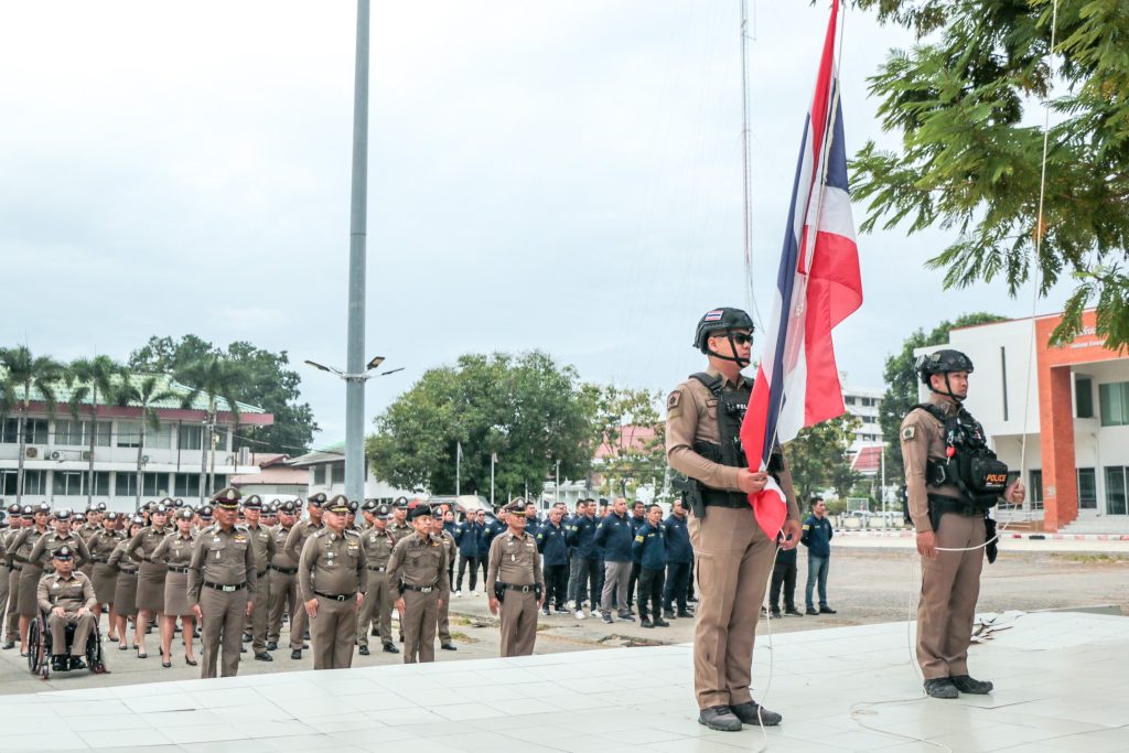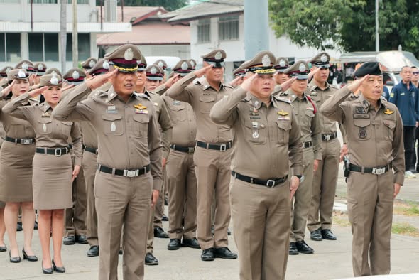 ที่หน้าอาคาร ภ.จว.กาฬสินธุ์ พล.ต.ต.ทรงพล บริบาลประสิทธิ์ ผบก.ภ.จว.กาฬสินธุ์ พ.ต.อ.คะเชนทร์ ยืนยง พ.ต.อ.นพดล ศรีชะตา รอง ผบก.ภ.จว.กาฬสินธุ์ พ.ต.อ.ปรมินทร์ ปัดทุมแฝง ผกก.ฝอ.ภ.จว.กาฬสินธุ์ ข้าราชการตำรวจ ฝ่ายอำนวยการฯ กลุ่มงานสอบสวนฯ กก.สืบสวน ภ.จว.กาฬสินธุ์ และ สภ.เมืองกาฬสินธุ์ เข้าแถวเคารพธงชาติ สวดมนต์ไหว้พระ กล่าวคำปฏิญาณตน และอุดมคติตำรวจ ตรวจเครื่องแต่งกาย และทรงผม พร้อมแจ้งข้อราชการที่สำคัญ ให้ผู้ใต้บังคับบัญชาทราบ (28 ต.ค. 2568 เวลา 08.00 น)