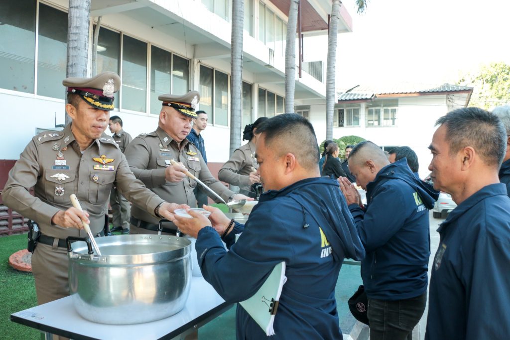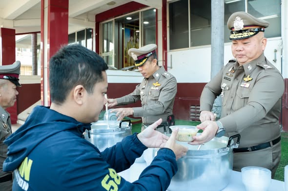 พล.ต.ต.ทรงพล บริบาลประสิทธิ์ ผบก.ภ.จว.กาฬสินธุ์ ได้จัดสวัสดิการเลี้ยงอาหารเช้ากำลังพลตำรวจ ฝ่ายอำนวยการ ภ.จว.กาฬสินธุ์ กก.สืบสวนฯ และ สภ.เมืองกาฬสินธุ์ เจ้าหน้าที่ สหกรณ์ฯ และประชาชนทั่วไป จำนวน 200 นาย บริเวณหน้าอาคาร ภ.จว.กาฬสินธุ์ เมนู “ข้าวต้มหมู ทรงเครื่อง” นมยูเอชที รสจืด และ ขนมหวานโดนัส จาก สอ.ภ.จว.กาฬสินธุ์ โดยจัดเลี้ยงอาหารเพิ่มเติมจาก “โครงการอาหารกลางวัน ภ.จว.กาฬสินธุ์ ทั้งนี้ ผบก.ฯได้มอบไข่เป็ด ให้ กก.สืบสวนฯ สภ.เมืองกาฬสินธุ์ และ สหกรณ์ฯ ไว้ประกอบอาหารตามโครงการฯในโอกาสนี้ด้วย ข้าราชการตำรวจทุกนายขอขอบพระคุณเป็นอย่างสูง13 ม.ค. 2569 เวลา 08.30 น.