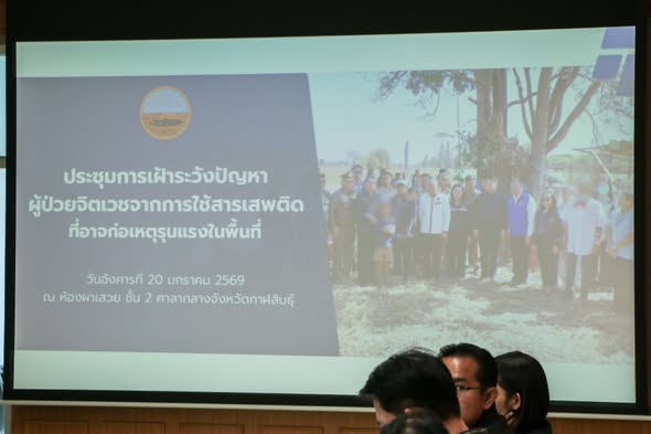 พล.ต.ต.ทรงพล บริบาลประสิทธิ์ ผบก.ภ.จว.กาฬสินธุ์ พ.ต.อ.นพดล ศรีชะตา รอง ผบก.ภ.จว.กาฬสินธุ์ พ.ต.อ.เสนีย์ กาญจนคช ผกก.สภ. สามชัย จนท.ศอ.ปส.ภ.จว.กาฬสินธุ์ ร่วมประชุมการเฝ้าระวังปัญหาผู้ป่วยจิตเวชจากการใช้ยาเสพติดที่อาจก่อความรุนแรงในพื้นที่ จังหวัดกาฬสินธุ์ โดยมี นายสุวรรธณ์ เข็มธนเพ็ชร ผู้ว่าราชการจังหวัดกาฬสินธุ์ เป็นประธาน มีหัวหน้าส่วนราชการ หน่วยงานที่เกี่ยวข้อง เข้าร่วมประชุมในครั้งนี้ ณ ห้องประชุมผาเสวย ชั้น 2 ศาลากลางจังหวัดกาฬสินธุ์ 20 ม.ค.2569 เวลา 09.30 น.