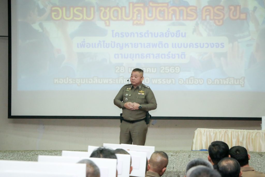 พล.ต.ต.ทรงพล บริบาลประสิทธิ์ ผบก.ภ.จว.กาฬสินธุ์ เป็นประธานเปิด และเป็นวิทยากรพิเศษบรรยาย การอบรมชุดปฏิบัติการ ครู ข. “โครงการตำบลยั่งยืนเพื่อแก้ไขปัญหายาเสพติด แบบครบวงจรตามยุทธศาสตร์ชาติ ประจำปี 2569” พ.ต.อ.นพดล ศรีชะตา รอง ผบก.ภ.จว.กาฬสินธุ์ พร้อมด้วย ผกก.ฯ สว.ฯหัวหน้าสถานีตำรวจ นำชุดปฏิบัติการ ครู ข.ทุกสถานี เข้าร่วมการอบรมในครั้งนี้ ณ ห้องประชุมเฉลิมพระเกียรติ 80 พรรษา อ.เมืองกาฬสินธุ์ จ.กาฬสินธุ์ (28 ม.ค.2569 เวลา 09.39 น. )