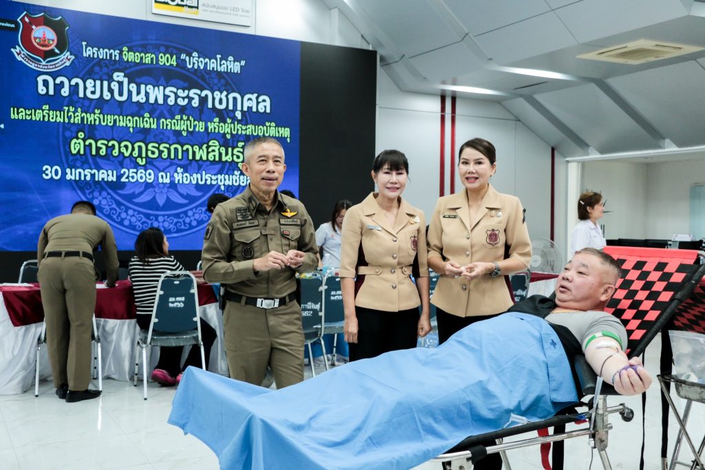 พล.ต.ต. ทรงพล บริบาลประสิทธิ์ ผบก.ภ.จว.กาฬสินธุ์ พ.ต.อ.คะเชนทร์ ยืนยง พ.ต.อ.ชุมพล หันชะนา รอง ผบก.ภ.จว.กาฬสินธุ์ คุณโสภิดา หันชะนา รองประธานแม่บ้านตำรวจภูธรจังหวัดกาฬสินธุ์ คณะแม่บ้านตำรวจ ร่วมกับคณะเหล่ากาชาดจังหวัดกาฬสินธุ์ โดย นางวรชาดา เข็มธนเพ็ชร นายกเหล่ากาชาดจังหวัดกาฬสินธุ์ เยี่ยมเป็นกำลังใจกำลังพลตำรวจ ตำรวจจิตอาสา ในสังกัด ภ.จว.กาฬสินธุ์ ที่มาบริจาคโลหิต เพื่อถวายเป็นพระราชกุศล พระบรมราชชนนีพันปีหลวงเสด็จสวรรคต ครบ 100 วัน และเตรียมไว้สำหรับยามฉุกเฉินกรณีผู้ป่วย หรือผู้ประสบอุบัติเหตุ ให้กับโรงพยาบาลกาฬสินธุ์ ผบก.ฯ ได้ร่วมบริจาคโลหิตในครั้งนี้ด้วย ณ ห้องประชุมชัยสุนทร ภ.จว.กาฬสินธุ์ (30 ม.ค. 2569 เวลา 08.39 น. )