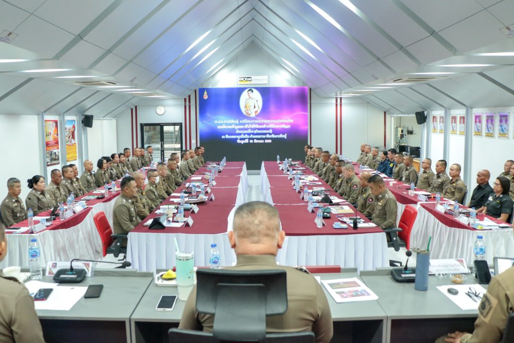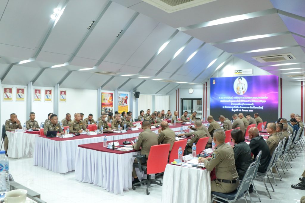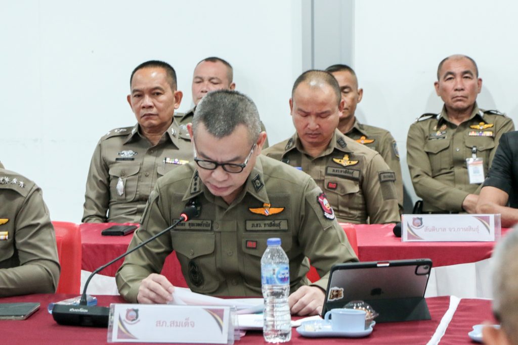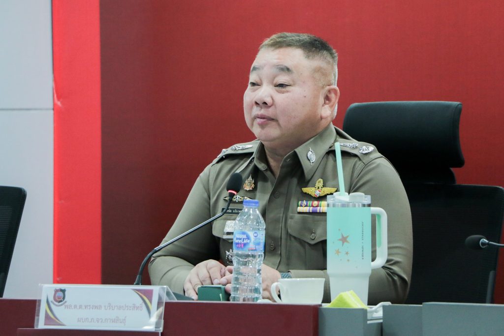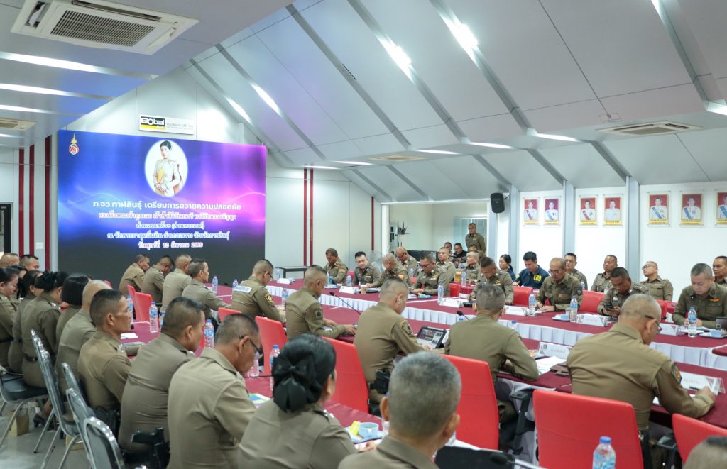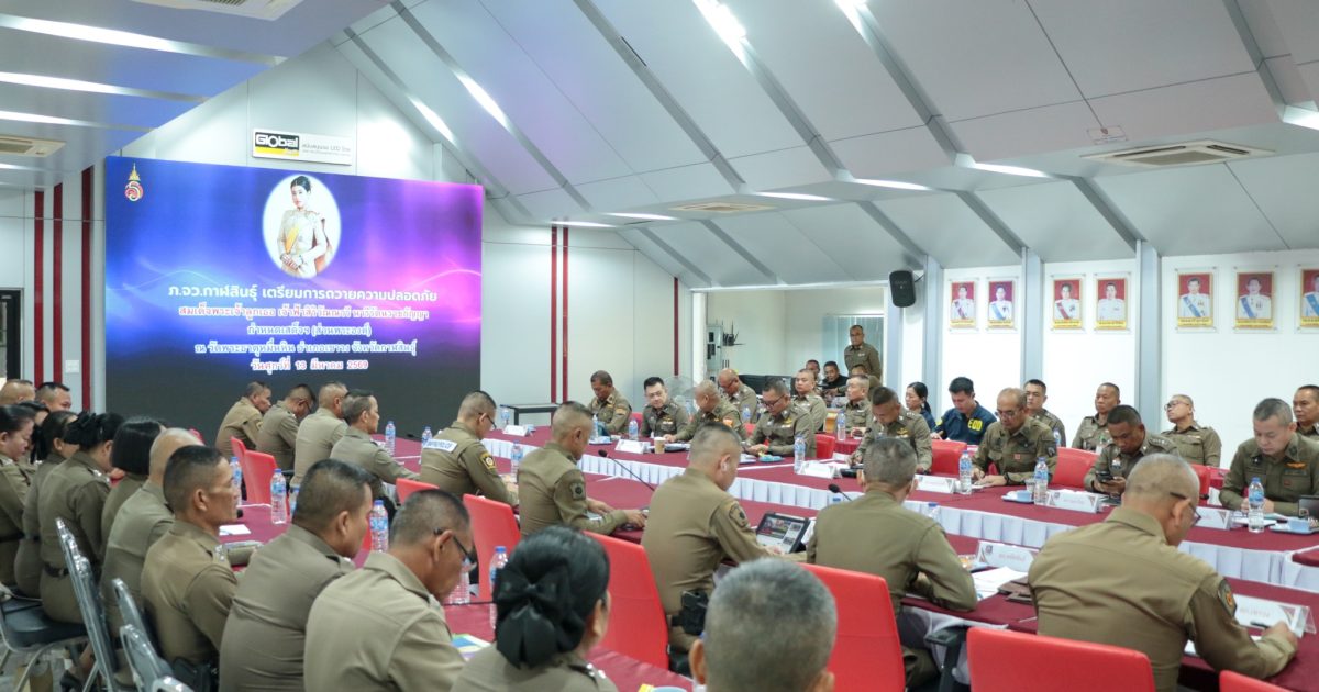 พล.ต.ต.ทรงพล บริบาลประสิทธิ์ ผบก.ภ.จว.กาฬสินธุ์ พ.ต.อ.พันกฤษณ์ วิชญชีวินทร์ พ.ต.อ.คะเชนทร์ ยืนยง พ.ต.อ.ขจรฤทธิ์ วงษ์ราช พ.ต.อ.นพดล ศรีชะตา พ.ต.อ.ปวิช แสงอรุณ พ.ต.อ.ชุมพล หันชะนา รอง ผบก.ภ.จว.กาฬสินธุ์ ผกก.ฯ สว.ฯ หน.สถานีตำรวจ หน.ชุดปฏิบัติการรักษาความปลอดภัยฯทางหลวง ตชด. สันติบาล ร่วมประชุมแถลงแผนเตรียมความพร้อมถวายความปลอดภัย สมเด็จพระเจ้าลูกเธอ เจ้าฟ้าสิริวัณณวรี นารีรัตนราชกัญญา เสด็จฯทรงปฏิบัติพระกรณียกิจ ทอดพระเนตรนิทรรศการ และการจัดแสดงผลงานภูมิปัญญาผ้าไหมและงานหัตถกรรมชุมชน ณ สหกรณ์ศูนย์ศิลปาชีพ ผ้าไหมแพรวาบ้านโพน อ.คำม่วง และเสด็จไปทรงยกช่อฟ้าพระวิหารไม้วัชรธรรมโสภณ ณ วัดพระธาตุหมื่นหิน อ.เขาวง จว.กาฬสินธุ์ ในวันที่ 13 มี.ค. 2569 (11 มี.ค.2569 เวลา 09.30 น. ) ห้องประชุมชัยสุนทร