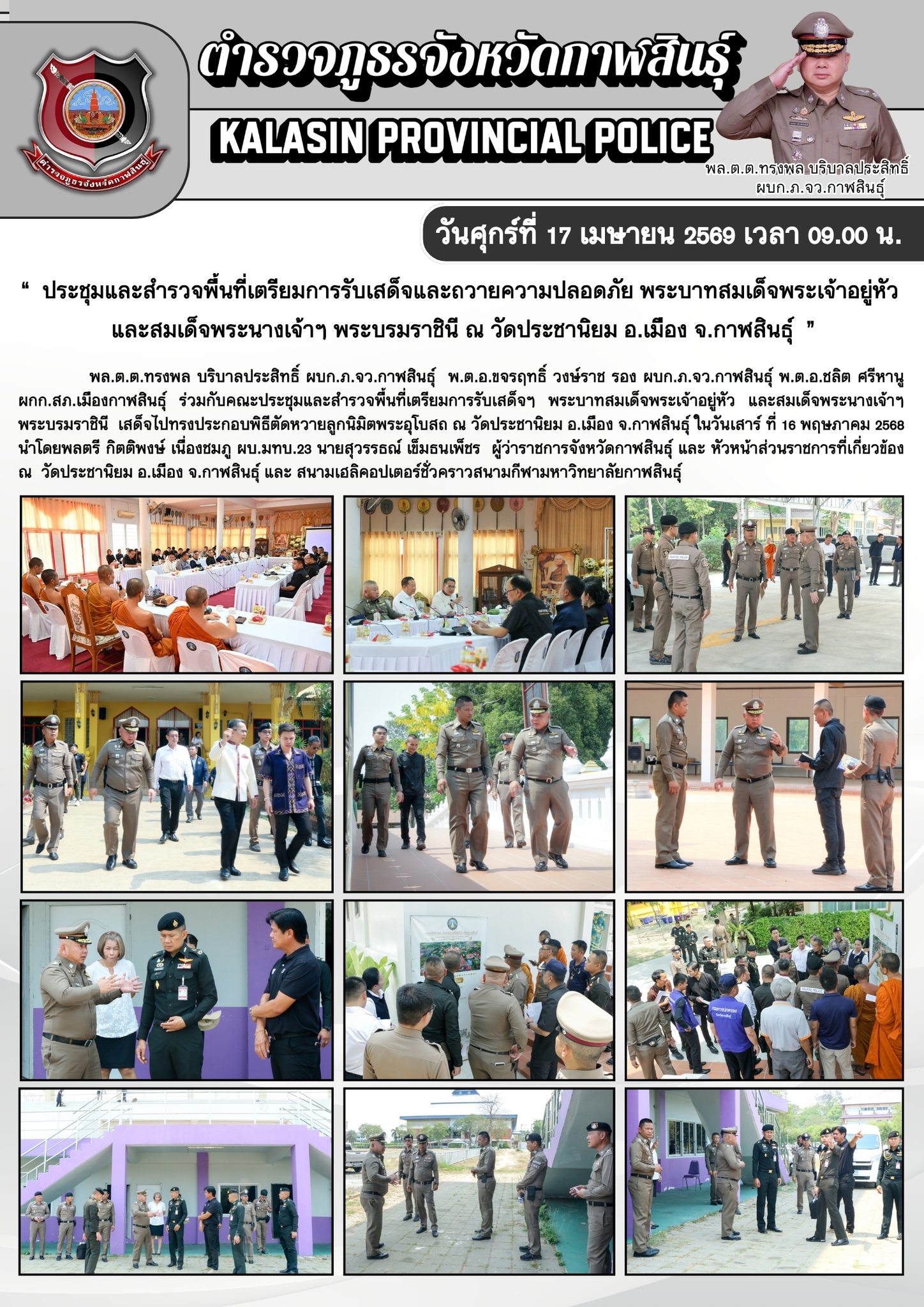 #ตรวจความเรียบร้อยพื้นที่เตรียมการรับเสด็จและถวายความปลอดภัย สมเด็จพระเจ้าลูกเธอ เจ้าฟ้าสิริวัณณวรี นารีรัตนราชกัญญา เสด็จไปทรงยกช่อฟ้าพระวิหารไม้ธรรรมโสภณ ณ วัดพระธาตุหมื่นหิน อ.เขาวง จว.กาฬสินธุ์”