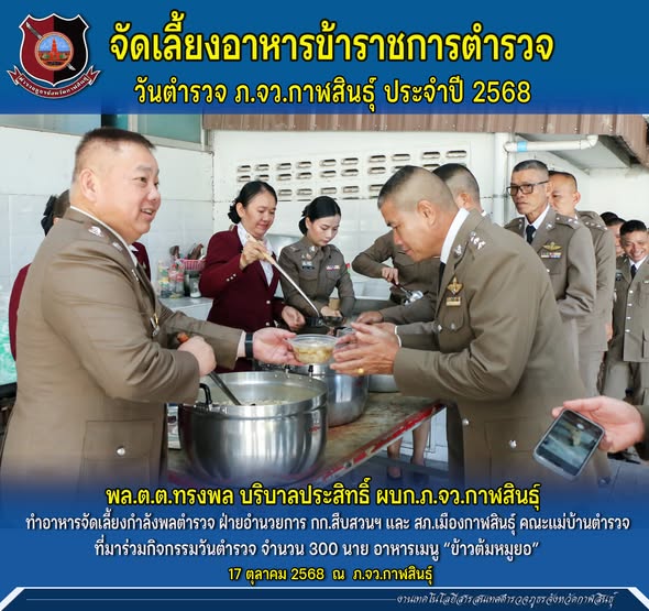 พล.ต.ต.ทรงพล บริบาลประสิทธิ์ ผบก.ภ.จว.กาฬสินธุ์ จัดทำอาหาร เมนู “ข้าวต้มหมูยอ” เลี้ยง กำลังพลตำรวจ ฝ