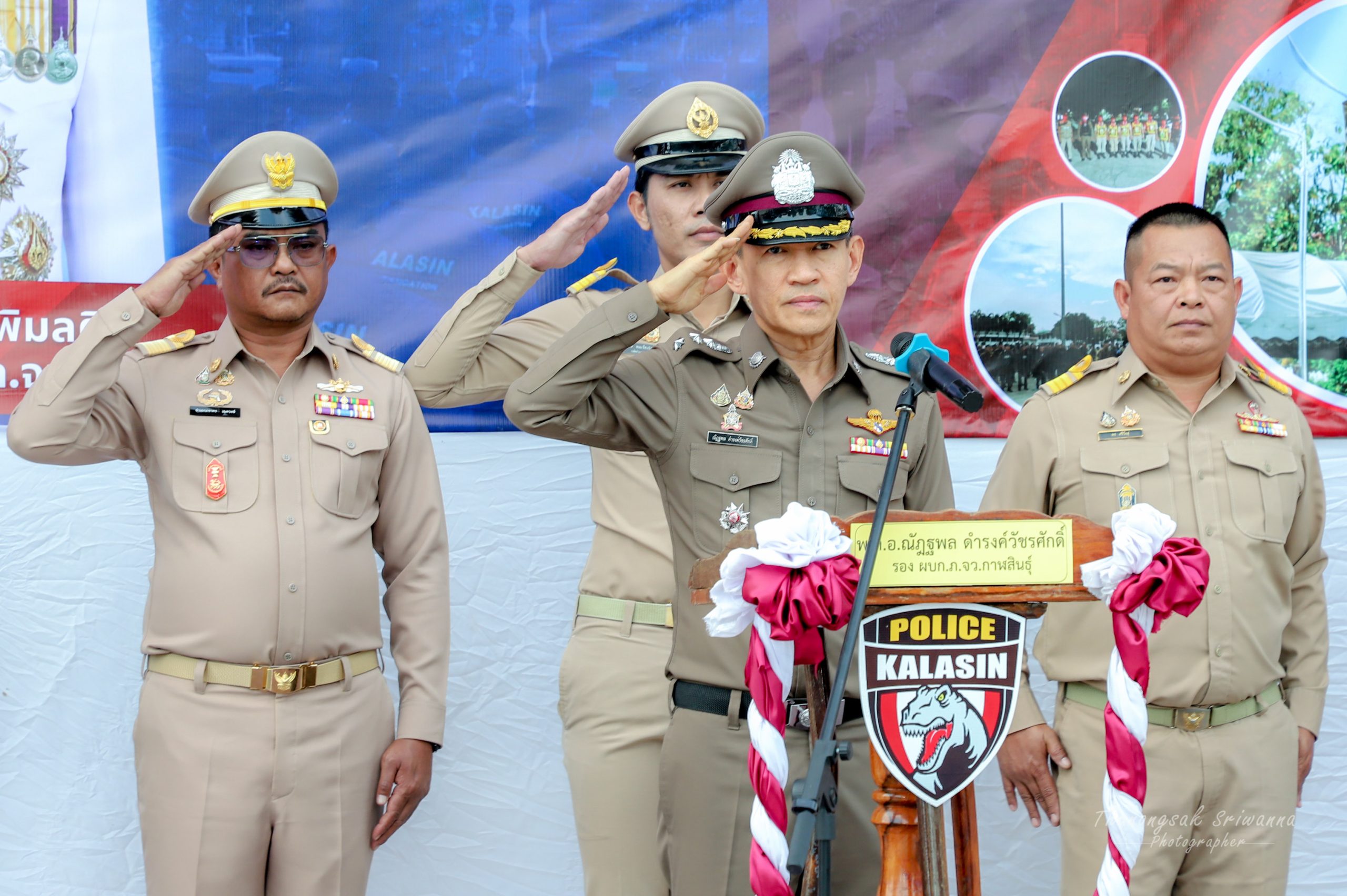 พล.ต.ต.อรรคพงศ์ พิมลศิริ รอง ผบช.ภ.4 รรท. ผบก.ภ.จว.กาฬสินธุ์ พร้อมด้วย ข้าราชการตำรวจฝ่ายอำนวยการ ภ.