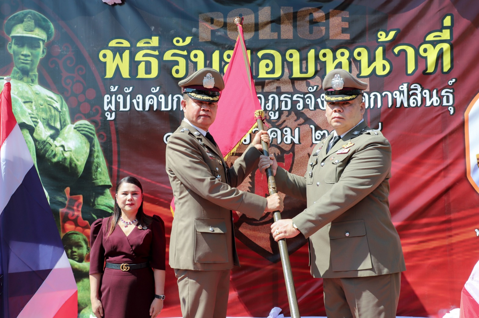 ภ.จว.กาฬสินธุ์ จัดกองเกียรติยศ ในพิธีรับมอบหน้าที่ มอบธงประจำหน่วย แฟ้มมอบหน้าที่ โดย พ.ต.อ.ชัยพร พง