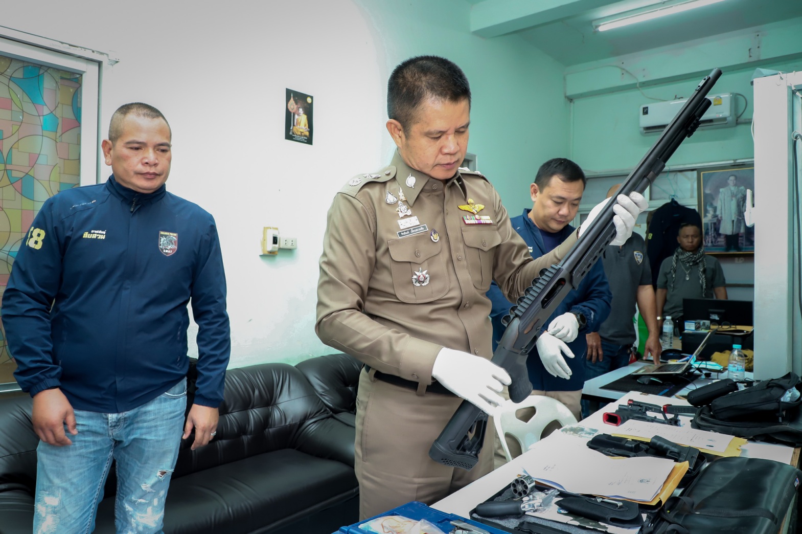 พล.ต.ต.ศิรสันห์ เยื้อนสงวนชัย ผบก.ภ.จว.กาฬสินธุ์ พ.ต.อ.นพวิทย์ ดิษฐาธนาธรสิริ ผกก.สืบสวน ภ.จว.กาฬสิน