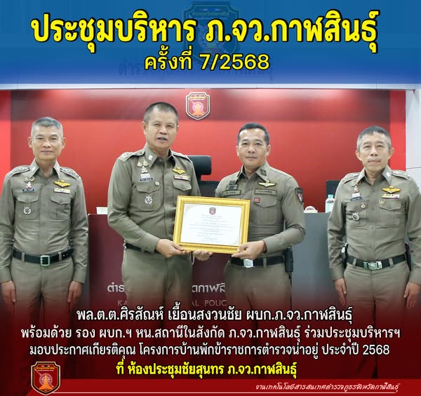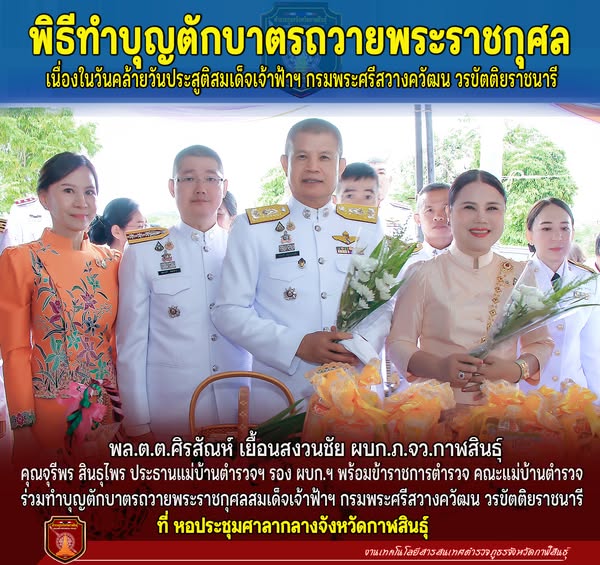 พล.ต.ต.ศิรสัณห์ เยื้อนสงวนชัย ผบก.ภ.จว.กาฬสินธุ์ คุณจุรีพร สินธุไพร ประธานแม่บ้านตำรวจฯ พ.ต.อ.สมพงศ์