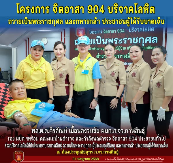 #โครงการจิตอาสา 904 บริจาคโลหิตบริจาค ถวายเป็นพระราชกุศล และเพื่อไว้ใช้ในยามฉุกเฉินกรณีผู้ป่วย หรือผู้ประสบอุบัติเหตุ และทหารกล้า-ประชาชนผู้ได้รับบาดเจ็บ”