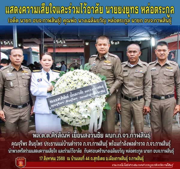 พล.ต.ต.ศิรสัณห์ เยื้อนสงวนชัย ผบก.ภ.จว.กาฬสินธุ์ คุณจุรีพร สินธุไพร ประธานแม่บ้านตำรวจ ภ.จว.กาฬสินธุ
