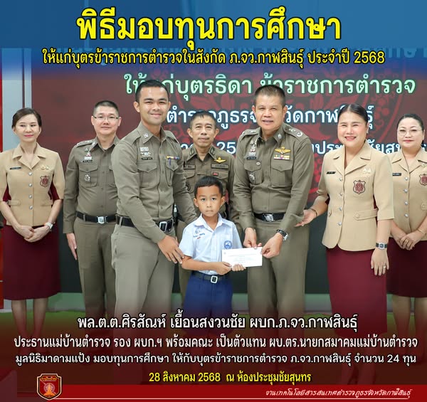 #ผู้การกาฬสินธุ์และประธานแม่บ้านตำรวจ เป็นตัวแทน ผบ.ตร. นายกสมาคมแม่บ้านตำรวจ มูลนิธิมาดามแป้ง มอบทุนการศึกษาให้แก่บุตรข้าราชการตำรวจในสังกัด ภ.จว.กาฬสินธุ์